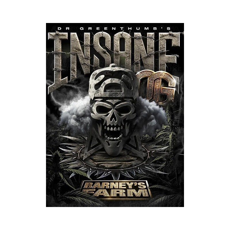 La Insane OG de Barney’s Farm es una variedad feminizada que rinde homenaje a las mejores genéticas Kush de la Costa Oeste. Destaca por su alto contenido en THC, su estructura robusta y compacta, una producción abundante en interior y exterior y un perfil aromático intenso a kush clásico con matices terrosos y cítricos. En cultivo desarrolla cogollos densos, cargados de resina y con una apariencia espectacular. Es una planta vigorosa, resistente y muy agradecida, perfecta para quienes buscan calidad premium sin complicaciones excesivas.