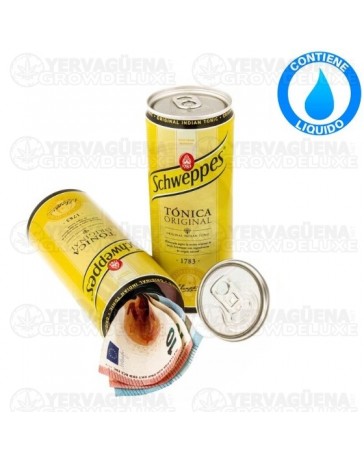 Con esta lata de tónica con doble fondo no podrás calmar tu sed, pero podrás ocultar tus objetos y pertenencias de valor (joyas, dinero, etc..) a la mirada de los curiosos, ya que por fuera es igual que una lata llena de bebida energética, pero por dentro tiene un compartimento que mantiene seguros y secos tus objetos de valor. Con apertura superior a rosca y acabado perfecto absolutamente invisible.