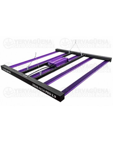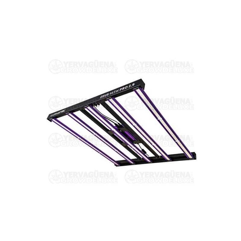 El LED Lumatek Zeus 465W Pro 2.9 de mayor especificación es un dispositivo de 5 barras de luz múltiple lineal que produce niveles muy altos de PPF de 1353 µmol/s y una eficacia de hasta 2,9 µmol / J .