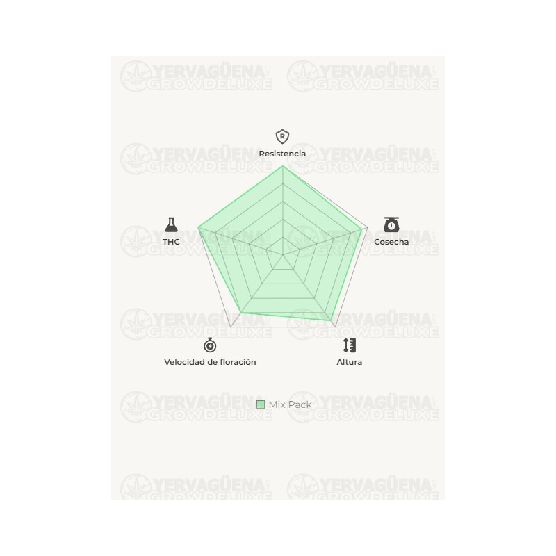 Con este pack disfrutarás de una experiencia completa gracias a su amplia gama de sabores, alto potencial productivo, genéticas estables y adaptabilidad en interior y exterior. Cada semilla es una sorpresa que puede elevar tu experiencia a lugares inxplorados. Si te gusta innovar y descubrir nuevas joyas cannábicas, este pack es para ti. ¡No te quedes sin el tuyo y dale un toque inseperado a tu cultivo!