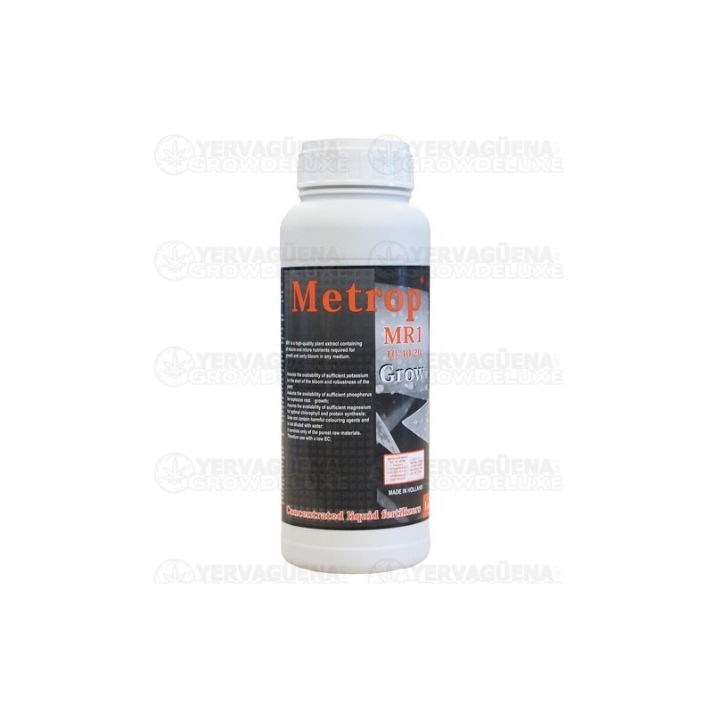 El fertilizante biológico concentrado de crecimiento Metrop MR1 se fabrica a partir de una extracción de alta calidad de plantas que contienen todos los macronutrientes y micronutrientes requeridos para el crecimiento y la pre-floración sobre cualquier medio.