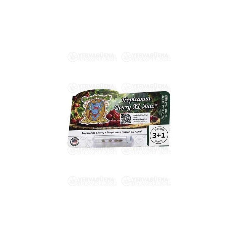 Tropicanna Cherry XL Auto es una autofloreciente de Sweet Seeds con un perfil terpénico brutal que huele a cereza dulce y cítricos, y un efecto potente y muy alegre. Una genética XXL creada por uno de los bancos más premiados del panorama cannábico. Si quieres sabor, resina y buen rollo, hazte con ella ya.