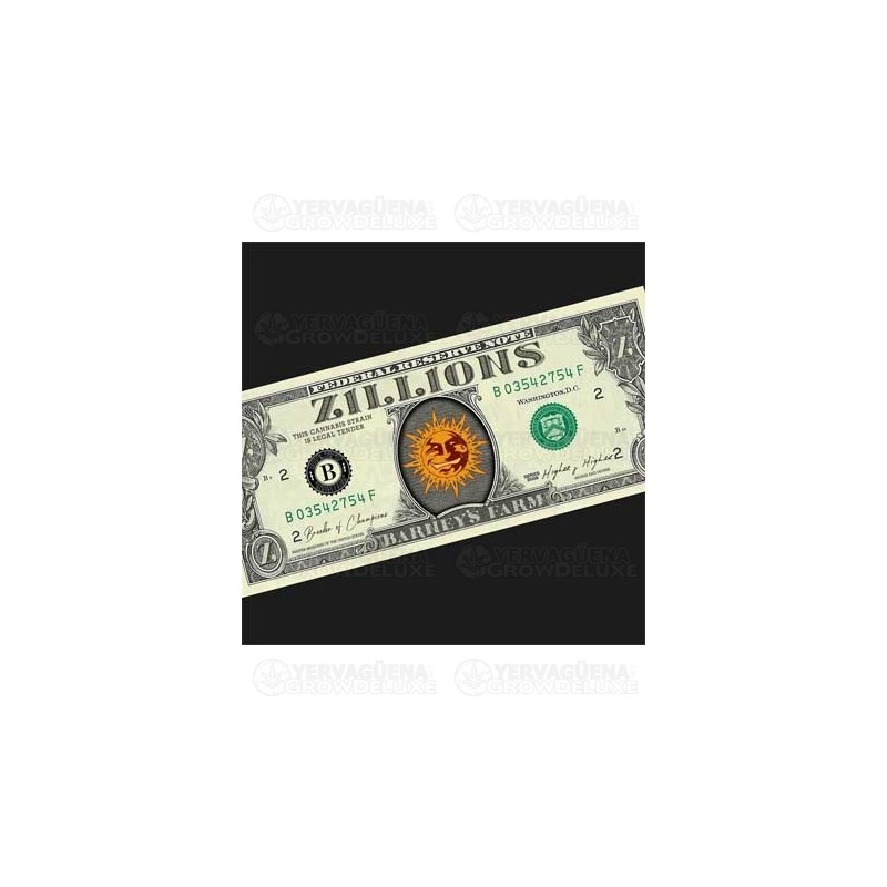 Zillions de Barney’s Farm es una genética premium creada a partir del cruce Original Zkittlez x Lemon Cherry Gelato, pensada para quienes buscan potencia extrema, sabores intensos, alto rendimiento y una experiencia premium en cada cultivo. Con un impresionante 32% de THC, ofrece un efecto contundente que arranca con una subida mental creativa y termina en una relajación corporal muy placentera. Su perfil aromático combina notas dulces tipo caramelo con matices cítricos y un fondo terroso que enamora desde la primera calada. En cultivo interior desarrolla una estructura equilibrada y resistente, alcanzando alturas de 100 a 120 cm y producciones de hasta 650 g/m², ideal para sacar el máximo partido a cada metro cuadrado. En exterior, bajo buenas condiciones, puede superar los 2 kg por planta, convirtiéndose en una opción perfecta para cultivos ambiciosos.